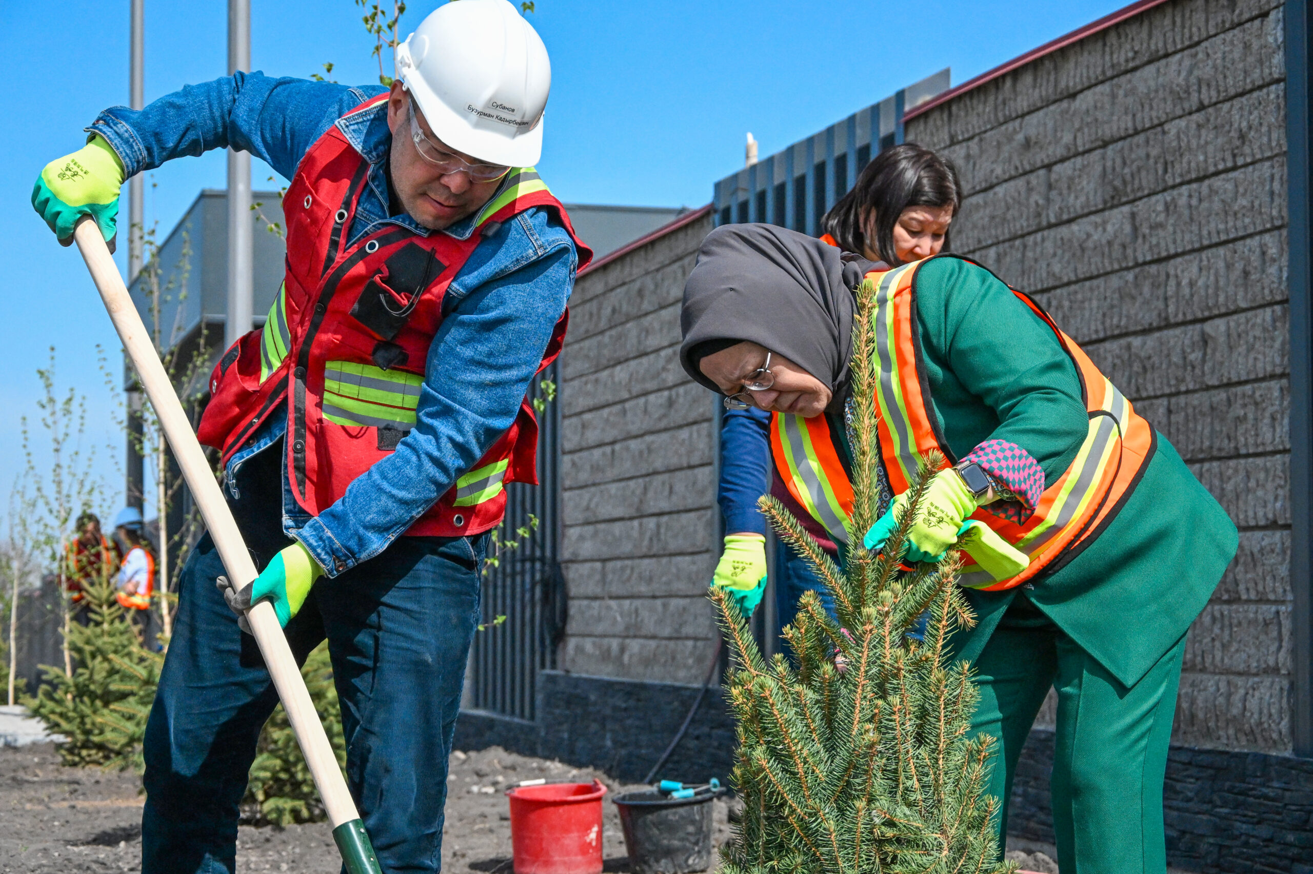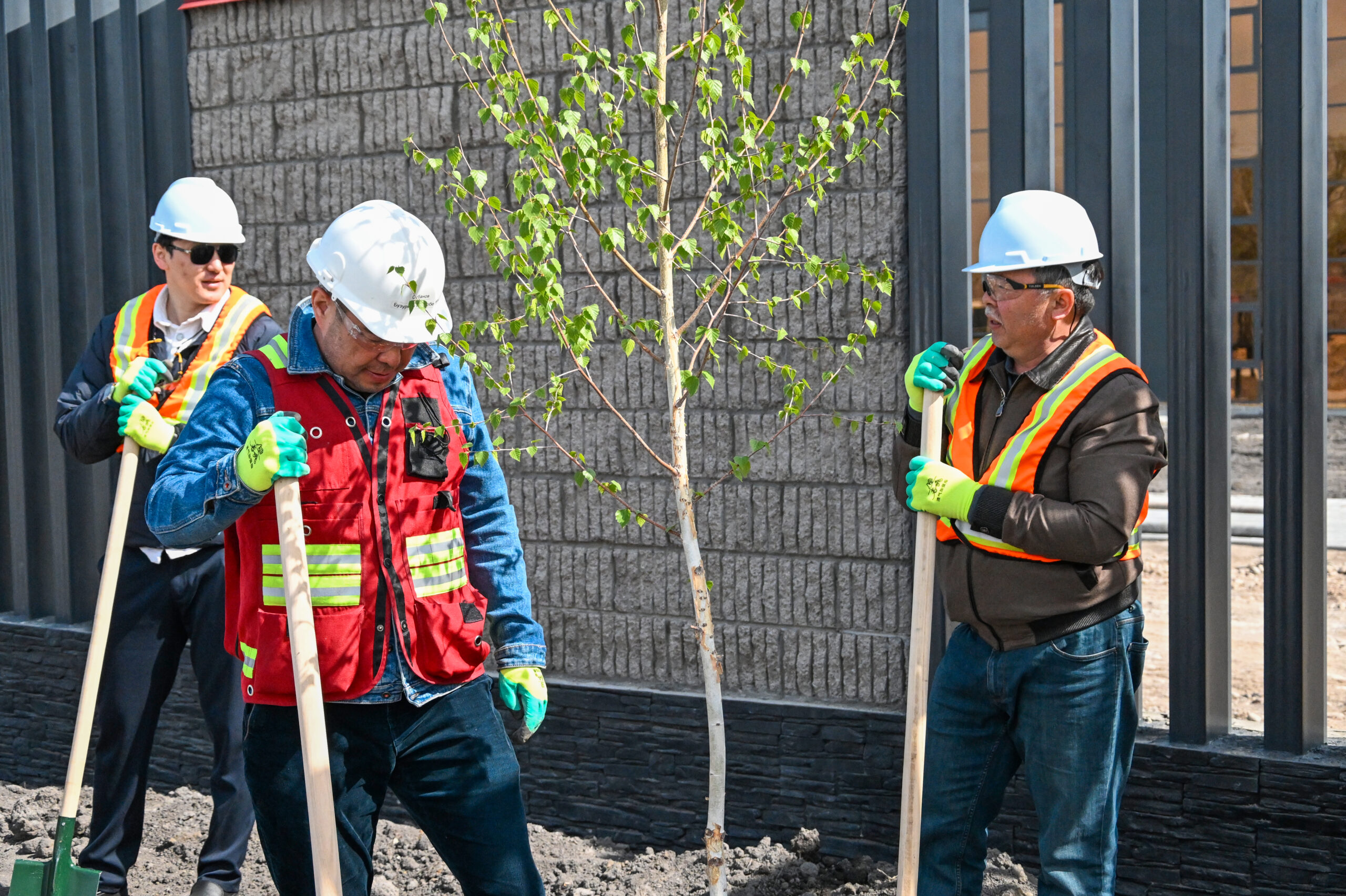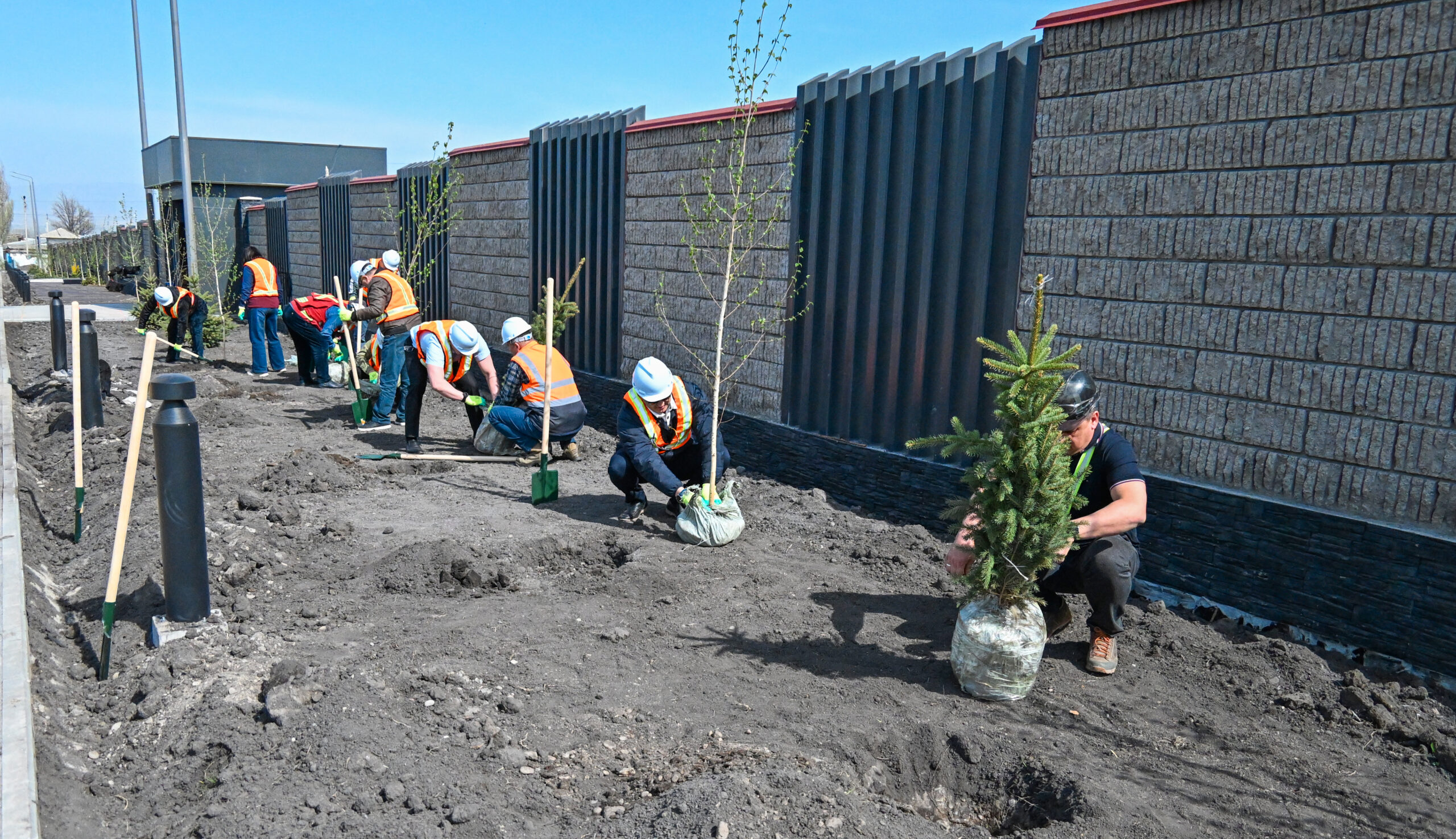 По итогам встречи руководство компании вместе с сотрудниками завода приняло участие в озеленении прилегающей территории. Здесь высадили саженцы белой березы и ели.